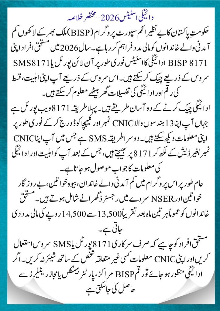 Quick Details – BISP 8171 Payment Status 2026
